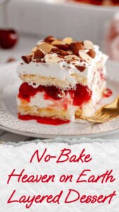No-Bake Heaven on Earth Dessert! Easy layered treat with creamy cheesecake, chocolate pudding, and whipped topping. A heavenly, crowd-pleasing no-bake dessert.